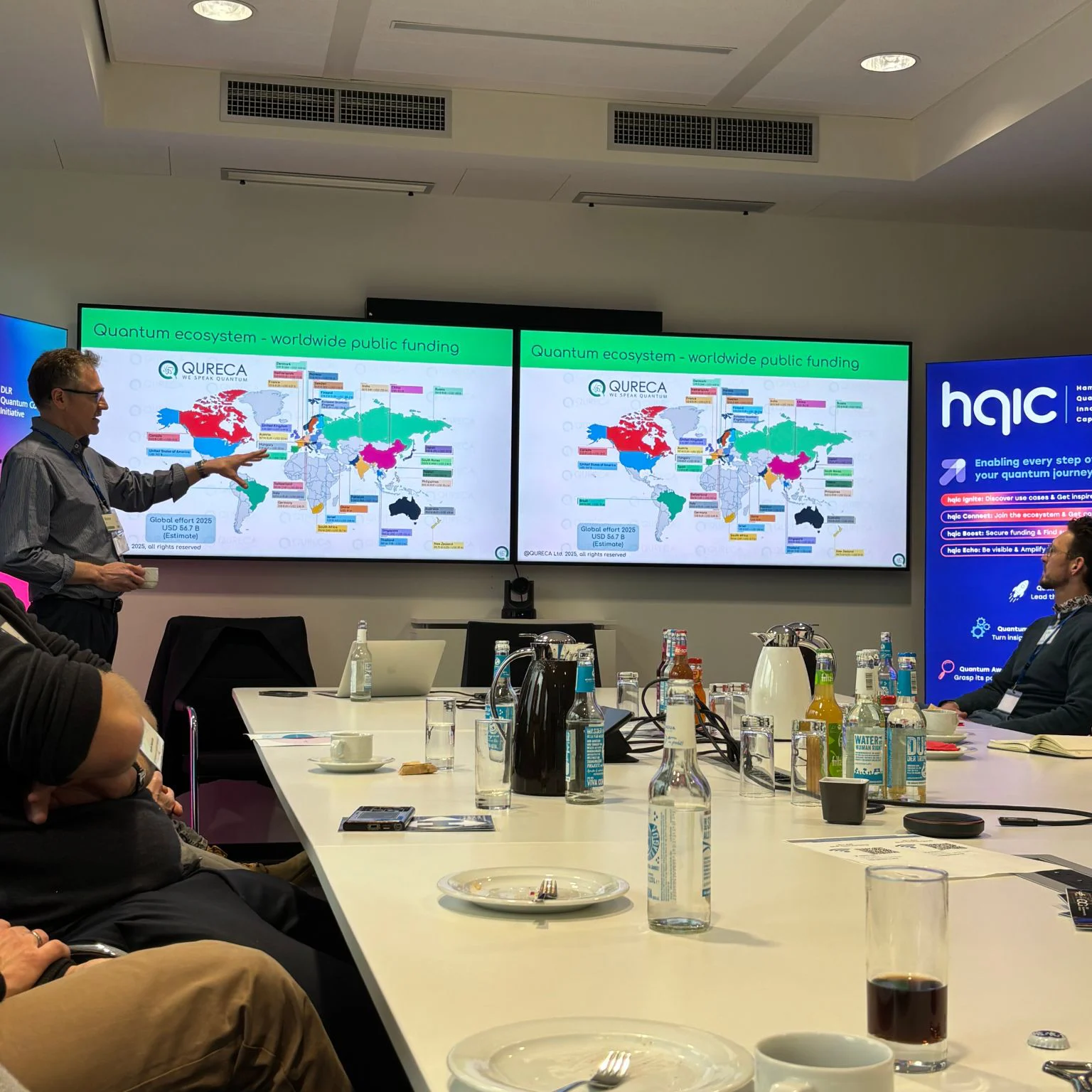 Ihr erster Baustein war diese „Awareness“-Session mit Besichtigung, Workshop und Networking. Hierfür haben wir uns mit dem EU-weiten Quantentechnologie- Konsortium QTIndu zusammengetran, die einen praxisnahen Workshop gaben, um die Technologie von Grund auf zu verstehen.