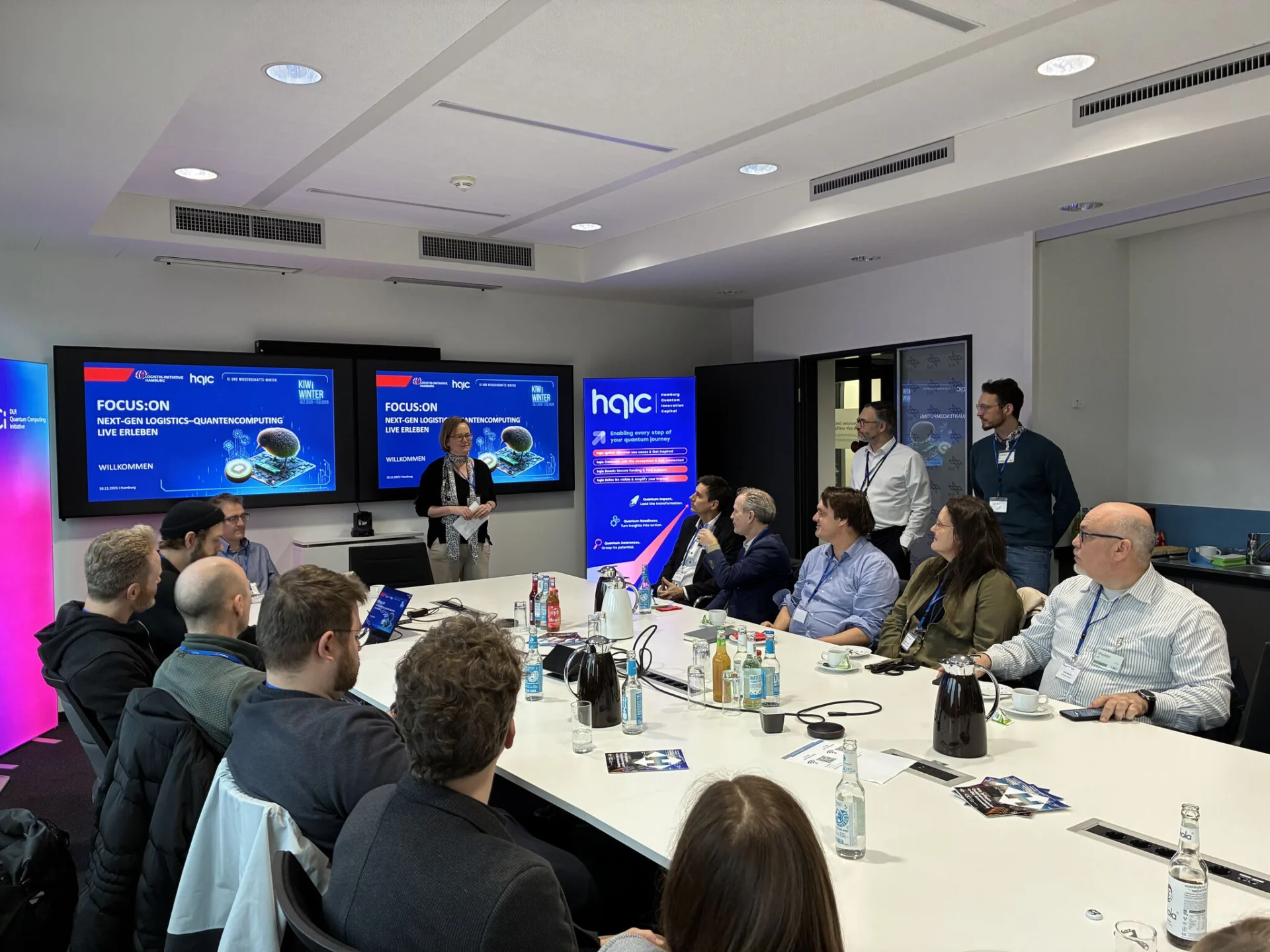 Am 10. Dezember 2025 lud die Logistik-Initiative Hamburg gemeinsam mit Hamburg Quantum Innovation Capital (hqic) im Rahmen des KI- und Wissenschaftswinter in das DLR QCI Innovationszentrum in Hamburg ein. Das Motto lautete: „Quantencomputer zum Anfassen“ und bildet den Auftakt der Veranstaltungsreihe „Quantum for Logistics“. Ziel ist es, Entscheider:innen und Mitarbeitende aus Logistikunternehmen einen möglichst greifbaren Zugang zur Zukunftstechnologie Quantencomputing zu ermöglichen und auf ihrem Weg in der Auseinandersetzung mit Quantencomputing in der Logistik zu begleiten.